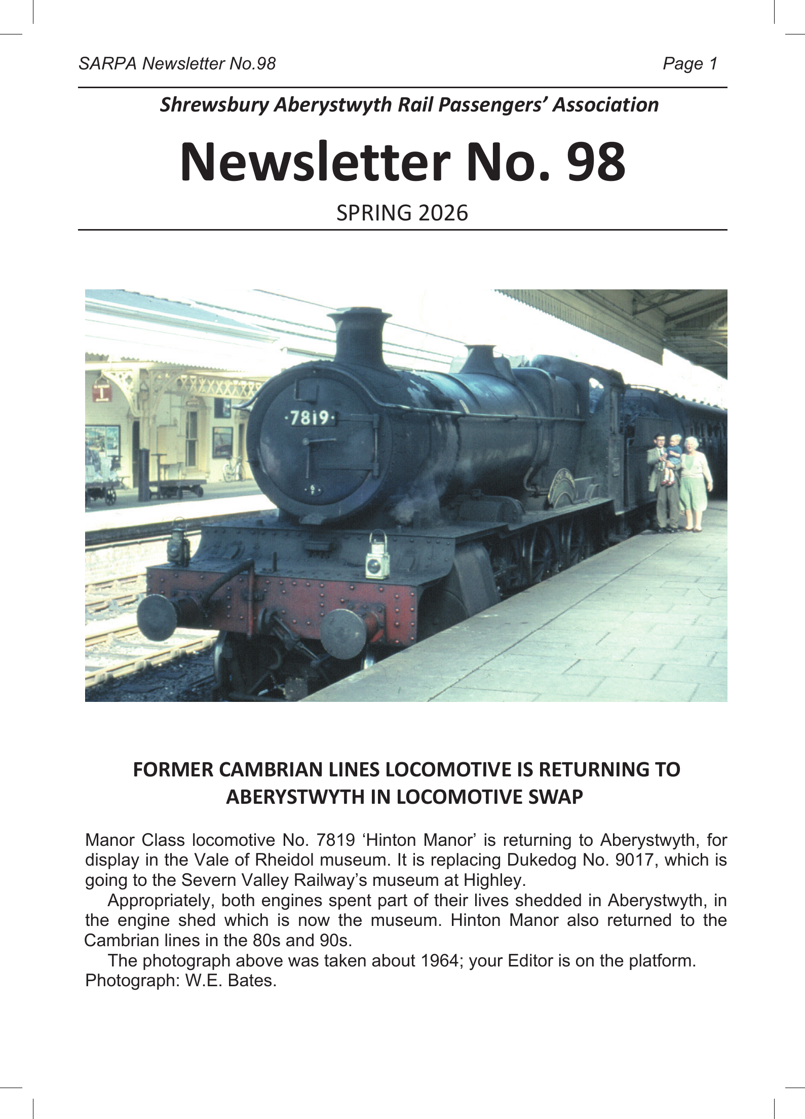 Shrewsbury to Aberystwyth Rail Passengers Association (SARPA) c/o Arosfa, 7 Railway Terrace, Heol y Doll, Machynlleth, Powys, SY20 8BJ Wales, United Kingdom © SARPA 2005-2025 All Rights Reserved Website:- Angus Eickhoff |